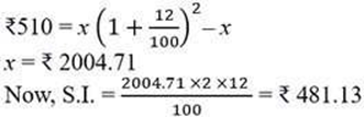 10. The compound interest on a sum for 2 years at 12% per annum is ₹510. What would the simple interest on the same sum at the same rate for the same period.